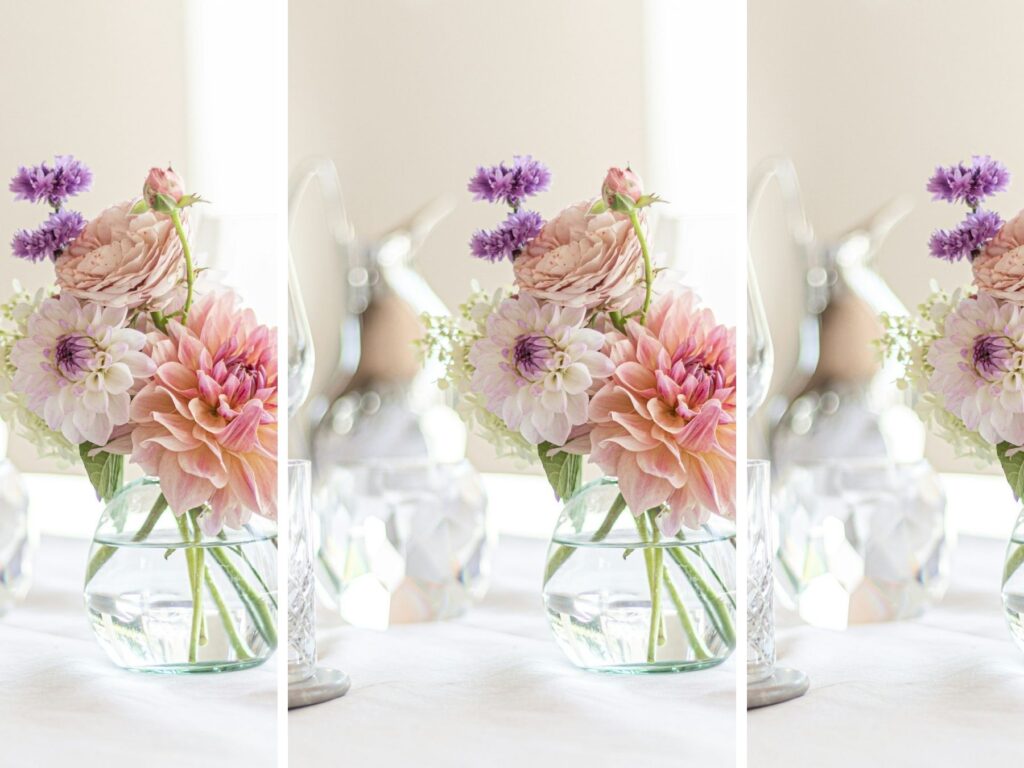 My favourite flower colours are blue and white or light lemon and white. Favourites are peonies, roses, hydrangeas, orchids and quince branches. I also like to use simple carnations, though these are thought to be old fashioned, they can create a stunning arrangement with the simplest of work. There’s nothing more beautiful than fresh flowers; they add a personal touch to any room or tablescape.
