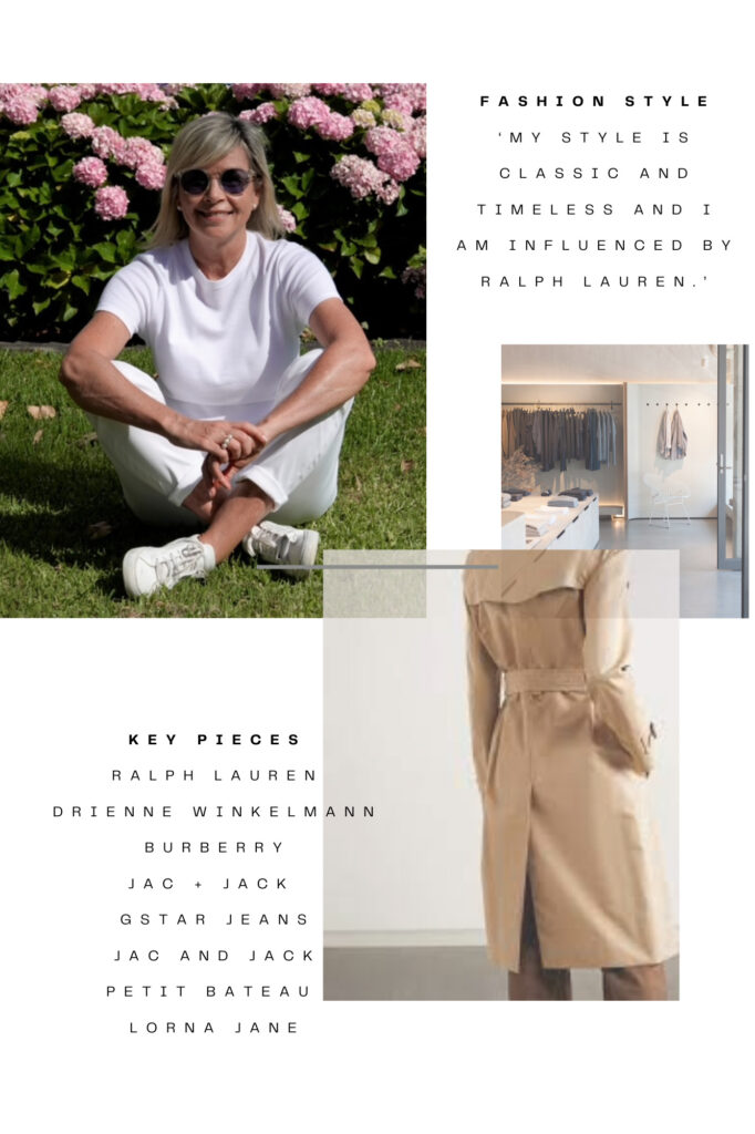 Which designer most influences you? ‘My style is classic and timeless. I am influenced by Ralph Lauren. Other designers are Drienne Winkelmann, Burberry for coats, GSTAR for jeans, Jac + Jack, Petit Bateau and Lorna Jane for activewear.’