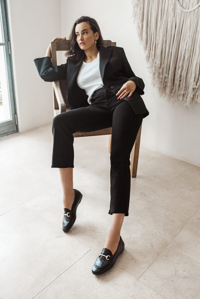 The Ines Shirt and Margot Jean. A combination of wearable and comfortable styling – highlighting Holly’s love of understated classic, timeless design.