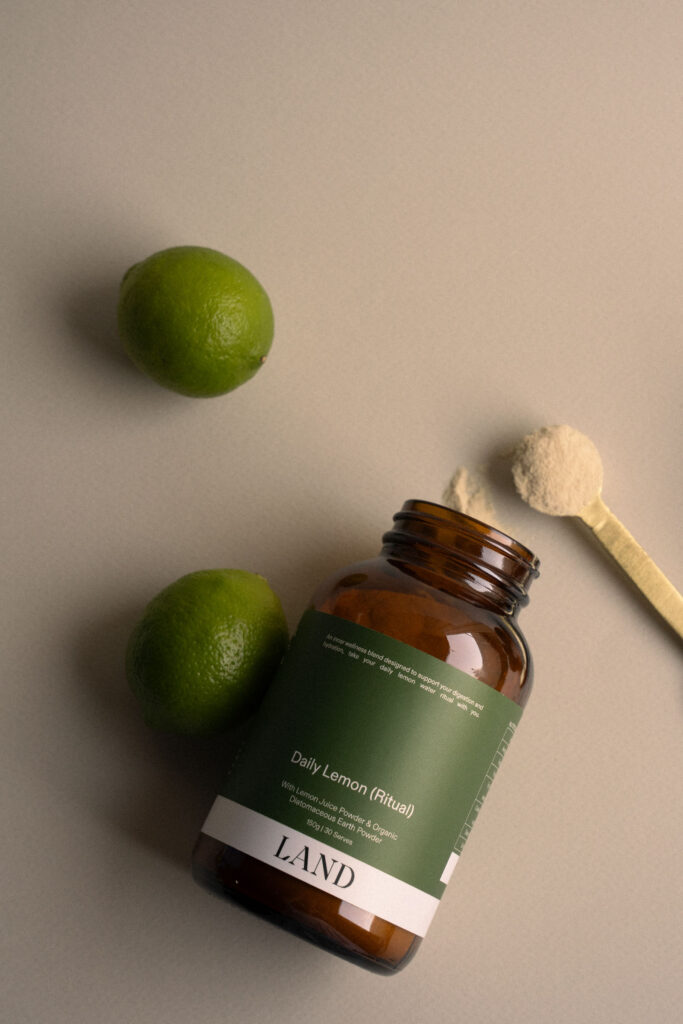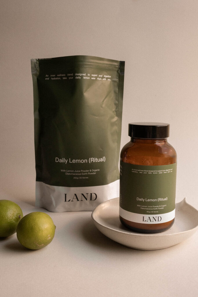 LAND has created Daily Lemon a wellness blend designed to support digestion and hydration. The formula of lemon juice powder and organic diatomaceous earth powder is like a hit of freshly squeezed lemons. It is mixed easily with hot or cold water. You need to think of this as your morning ritual. You can take it on a plane, on the road, a weekend away or at the office.