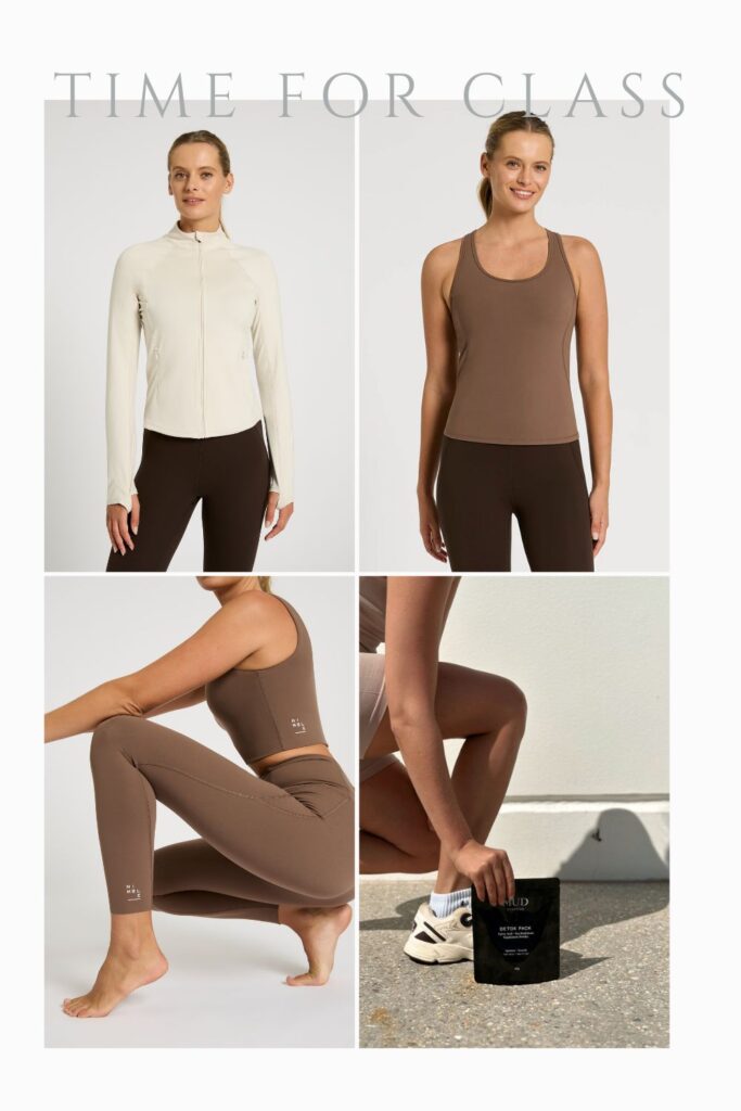 Recently I have been having a little ‘Espresso moment‘ to veer away from all things black every time I look to new pieces. Here are a few of my current favourite pieces that can take you to and from class and back to home for a little bit of lounging around. And while you are there add one or two special beauty and wellbeing moments to the mix to reward yourself for a fitness program well done!
