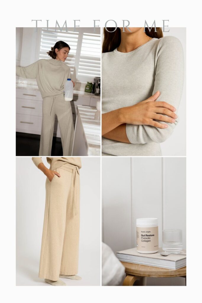 The Me Time Pant and Pullover in Oatmeal – for that coffee or reading, or simply to take a moment.