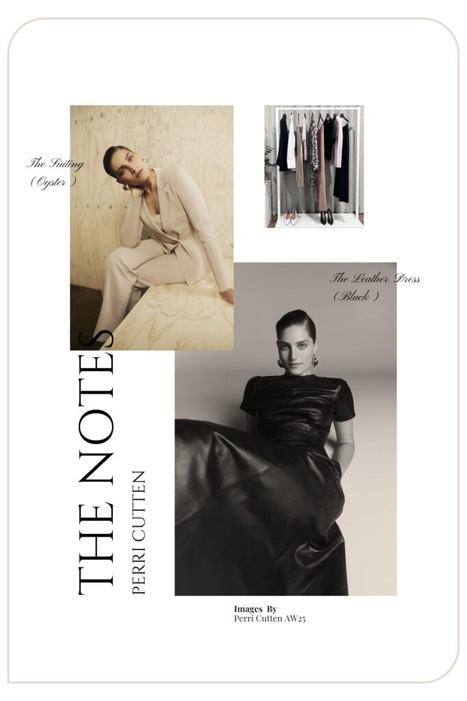 The Style Notes: Perri Cutten The Leather Dress, The Ondine Suiting Collection and The Crepe Knit Skirt—to continue the story.