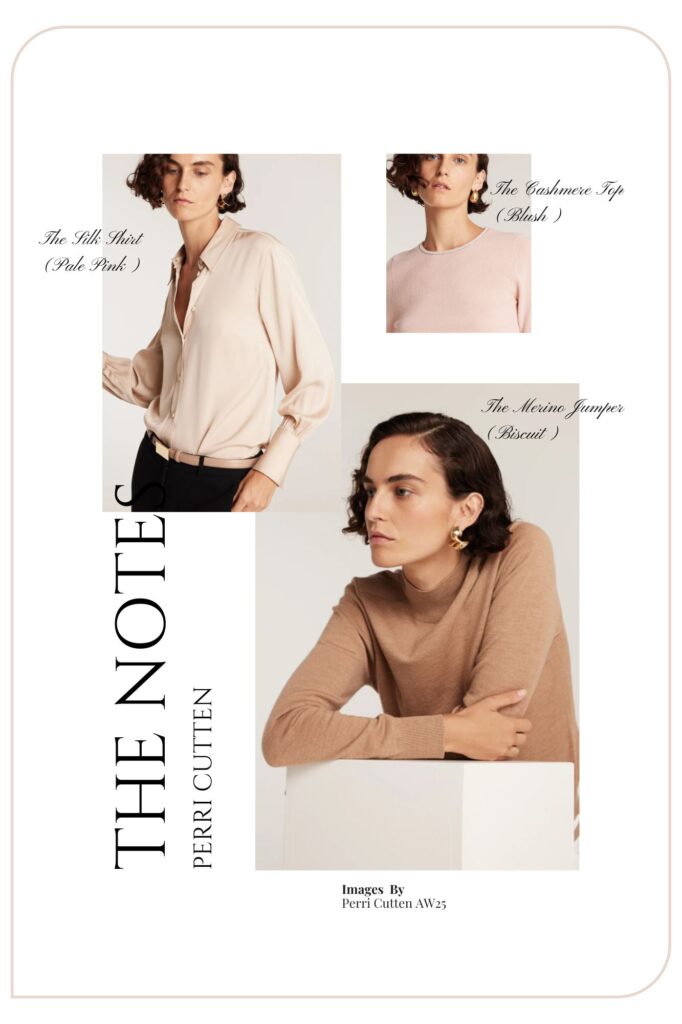 The Style Notes: Perri Cutten The Silk Shirt, The Cashmere Top, and The Merino Jumper—to mix and match across the capsule.