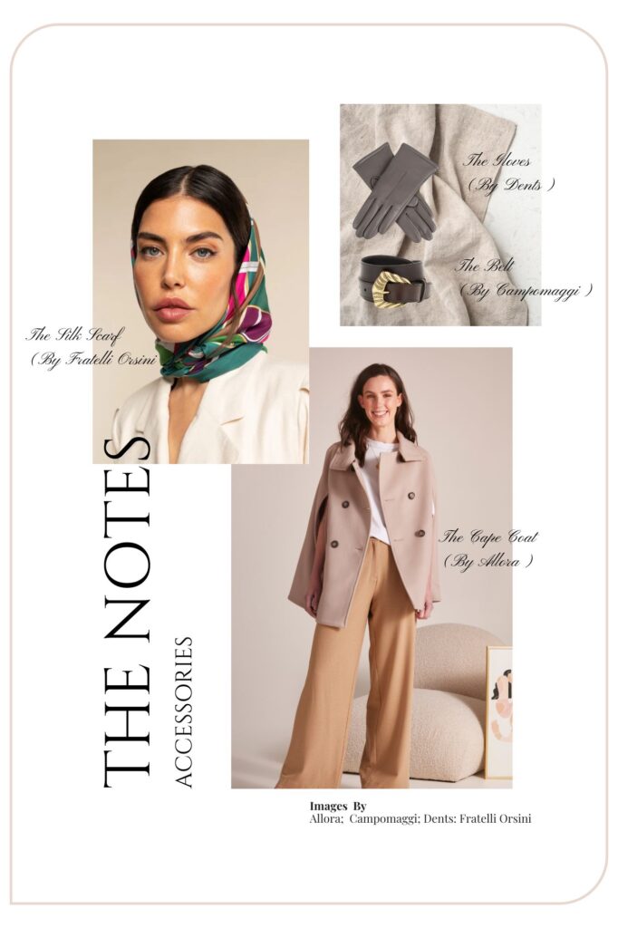 The Style Notes: Cornelia James The Imogen Gloves; Allora The Cape Coat; Fratelli Orsini The Silk Scarf: Campomaggi The Classic Belt; Dents The Single-Poppy Point Gloves.